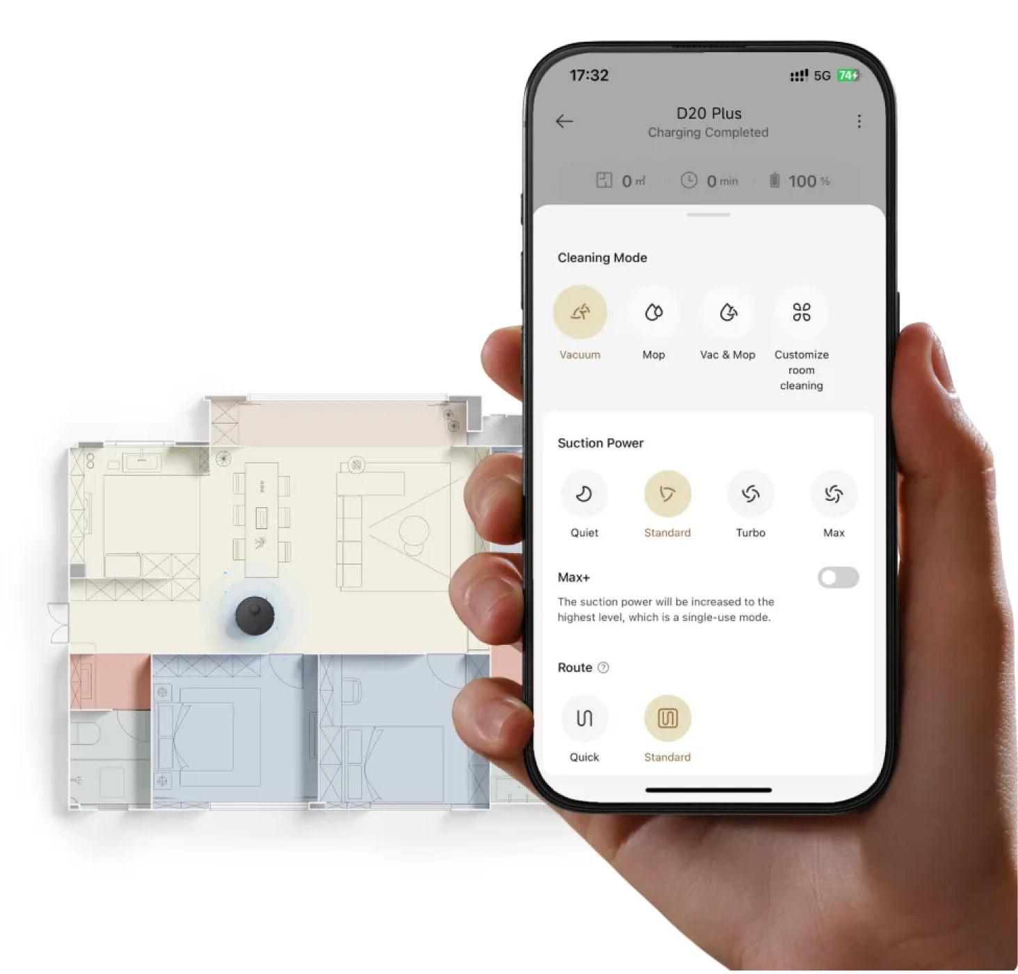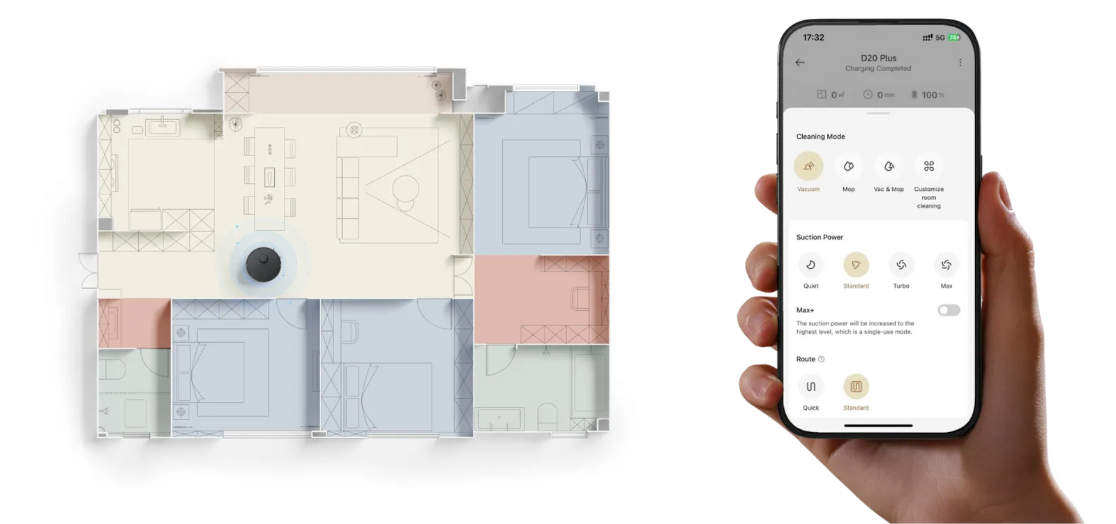 D20 Plus boasts 13,000Pa suction power and an extendable detangling side brush, making it effective for dirt removal across surfaces. Its innovative HyperStream™ detangling DuoBrush simplifies hair cleanup, while the spacious dust bag offers you 150 days of hands-off dust collection.