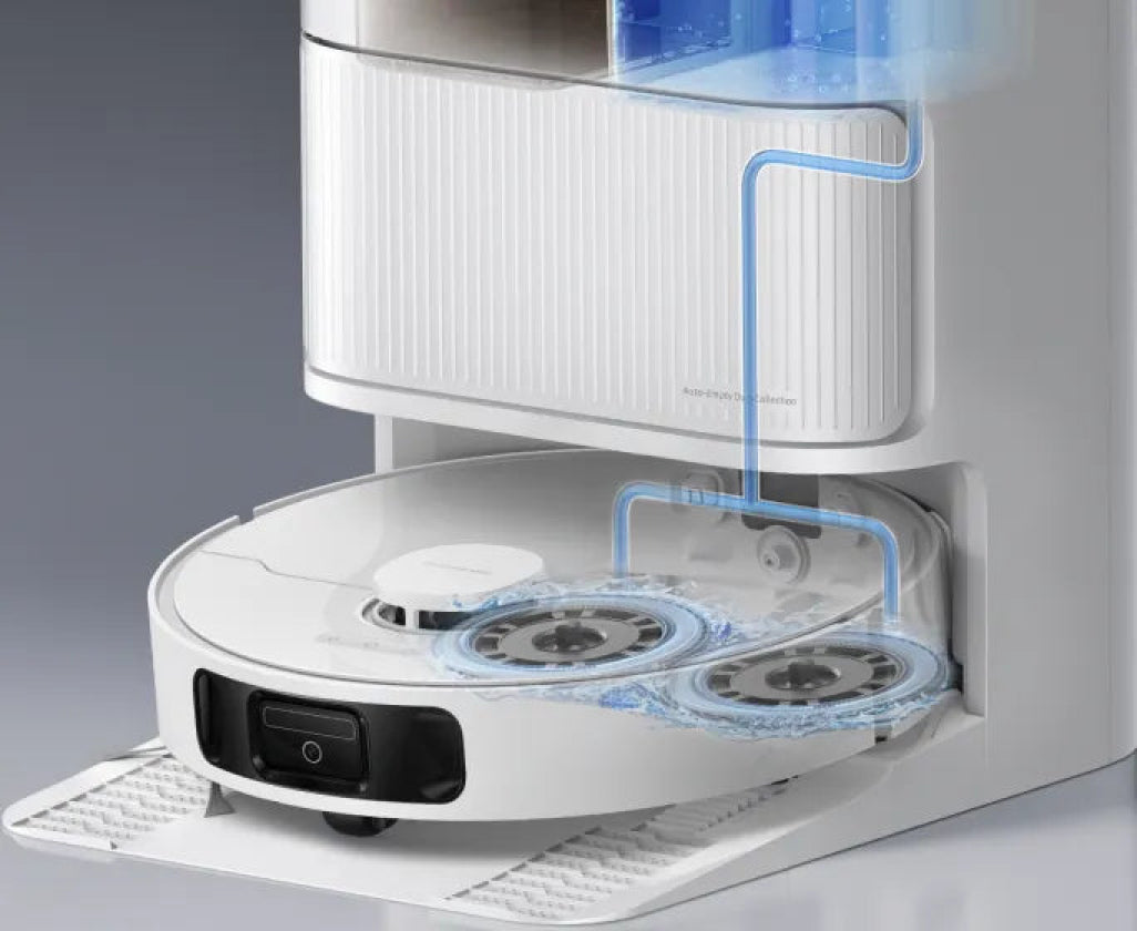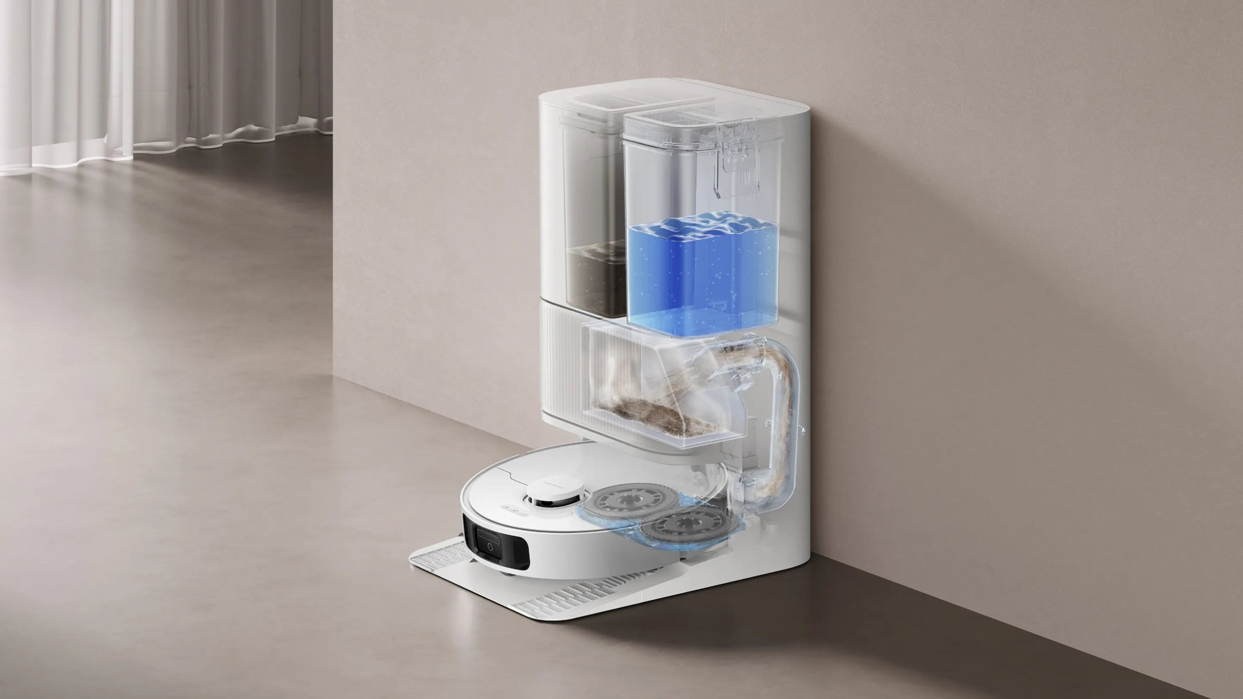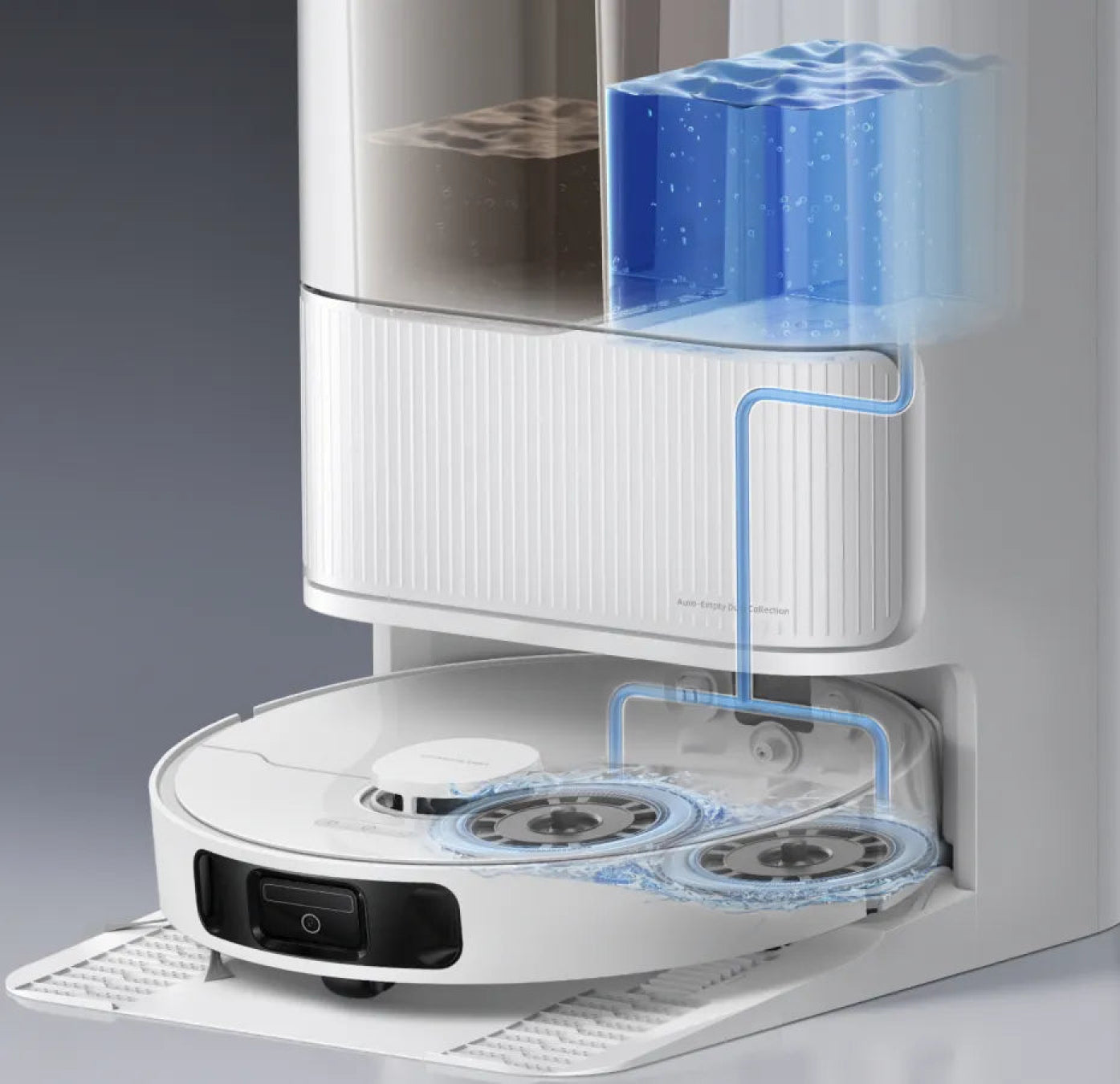 The robot vacuum handles its maintenance through mop washing and drying. Once cleaning is done,