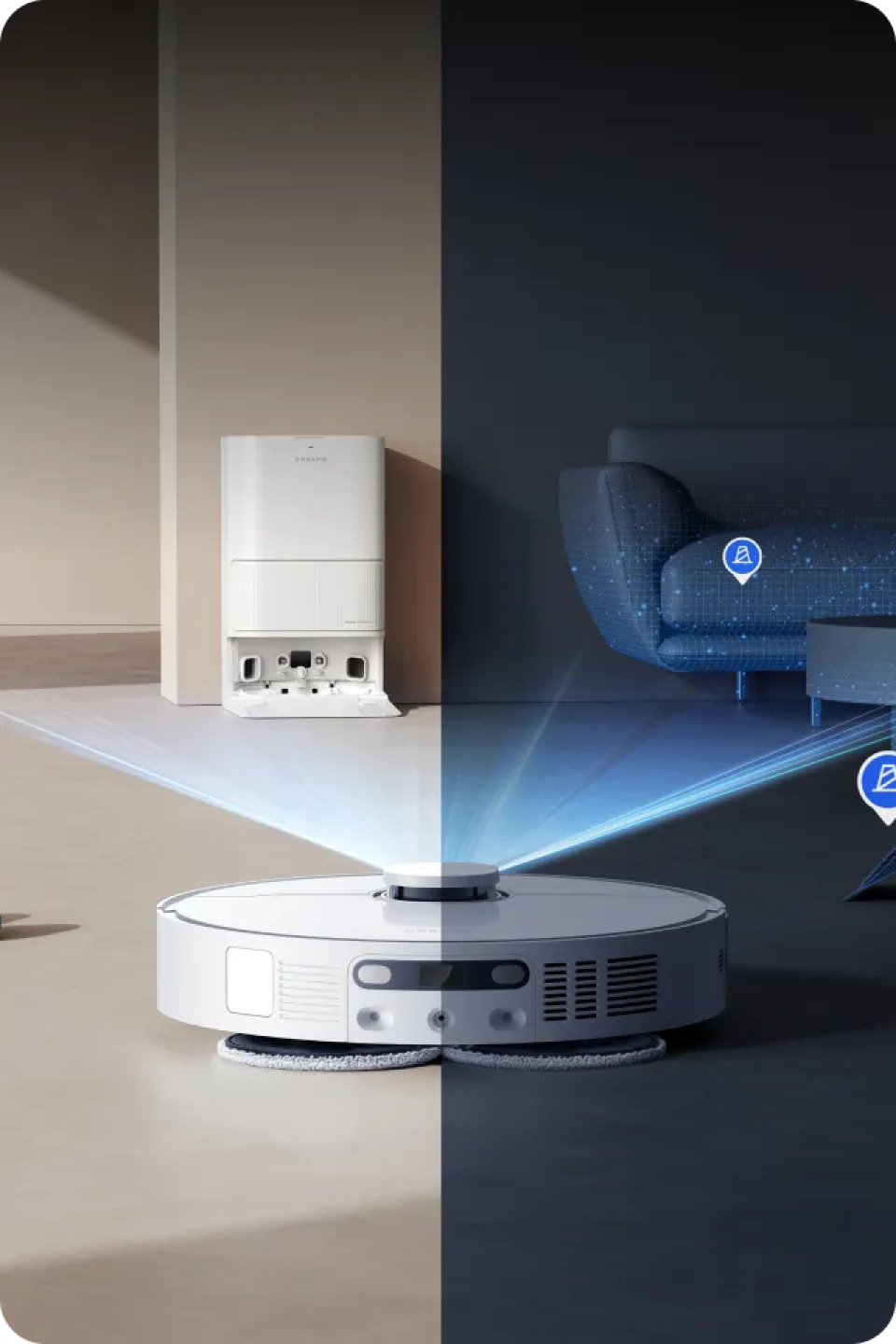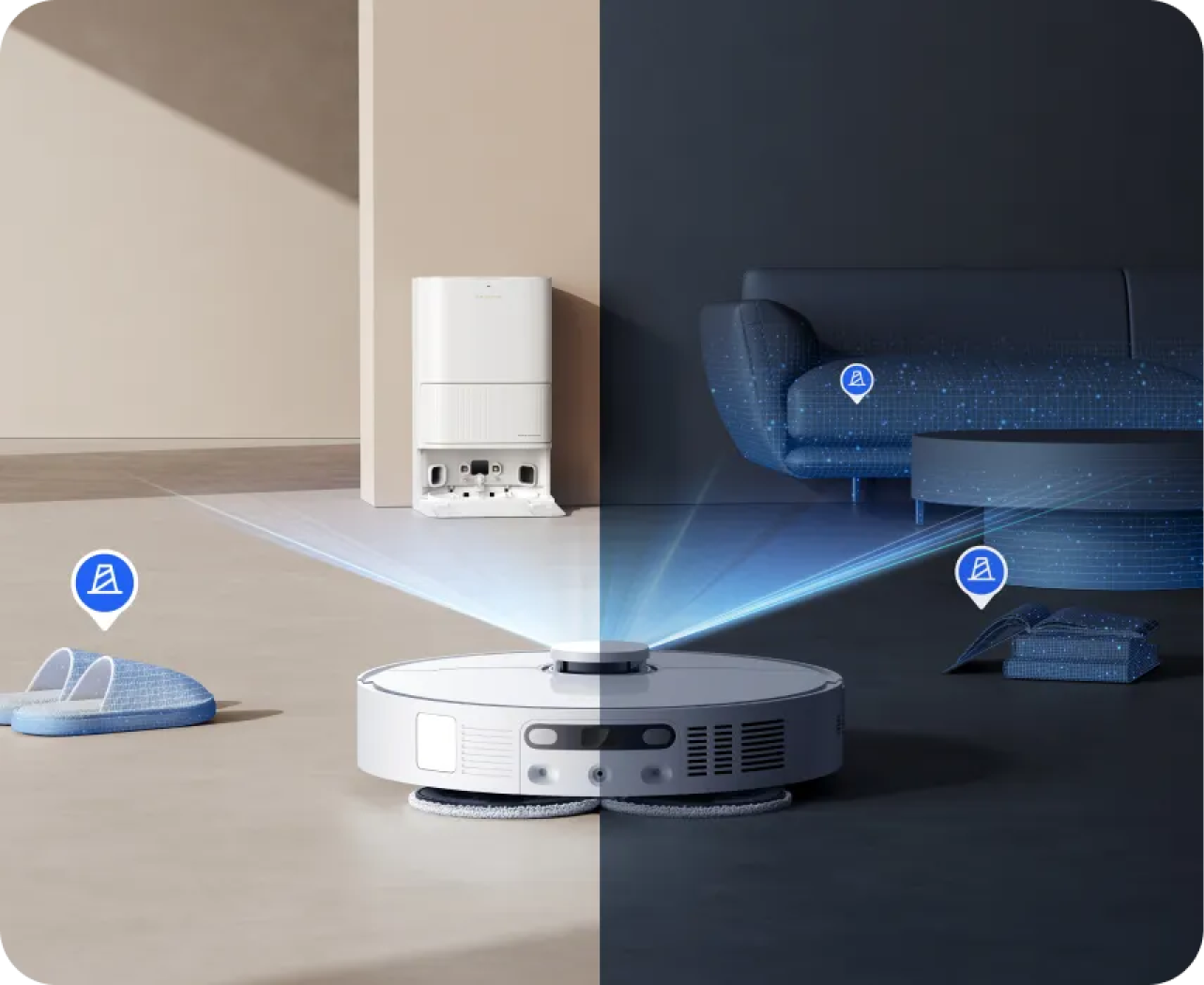 3DAdapt™ Obstacle Avoidance utilizes precision path planning for seamless navigation around furniture and other obstacles, ensuring consistent cleaning performance—no collisions, no missed spots.