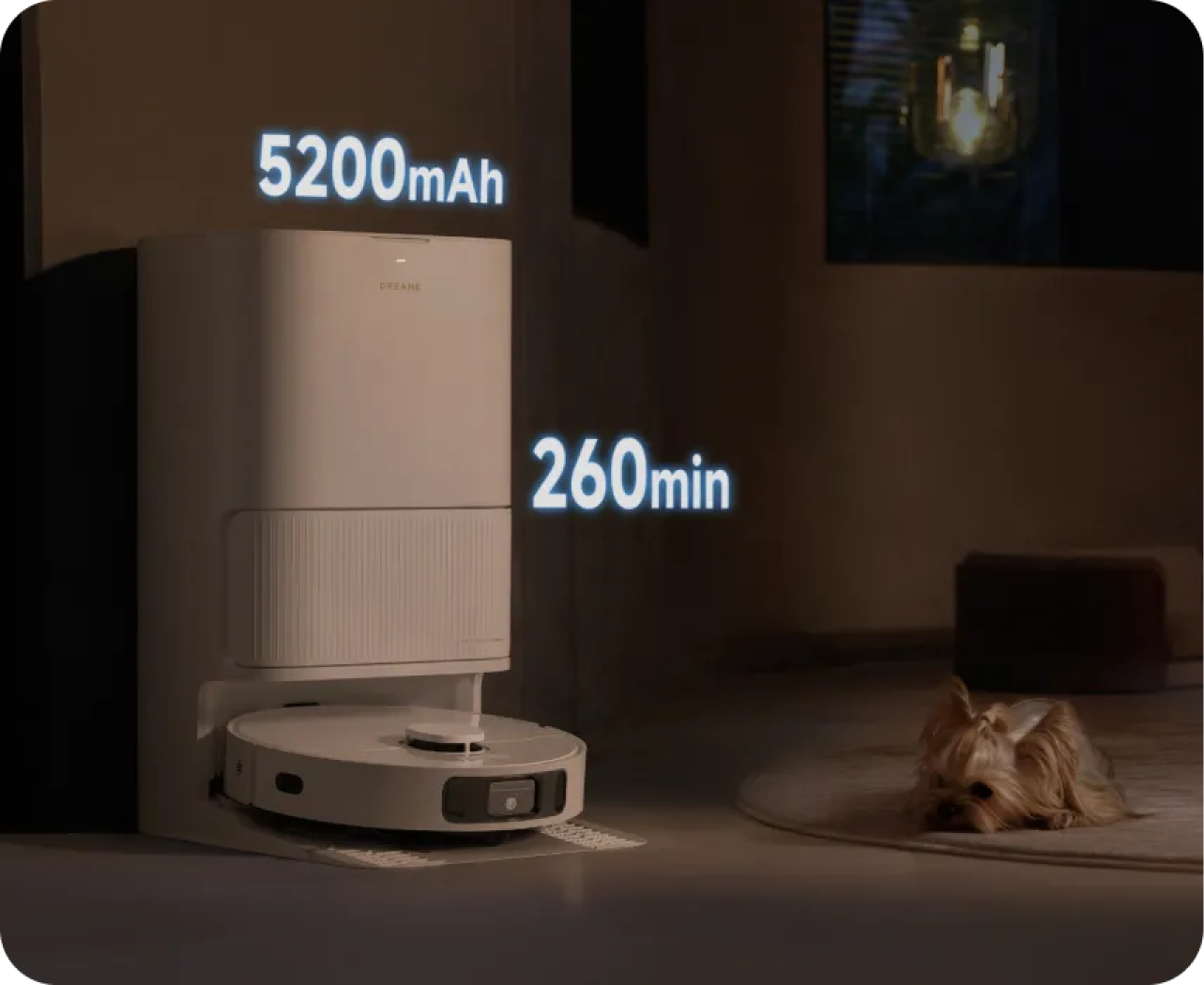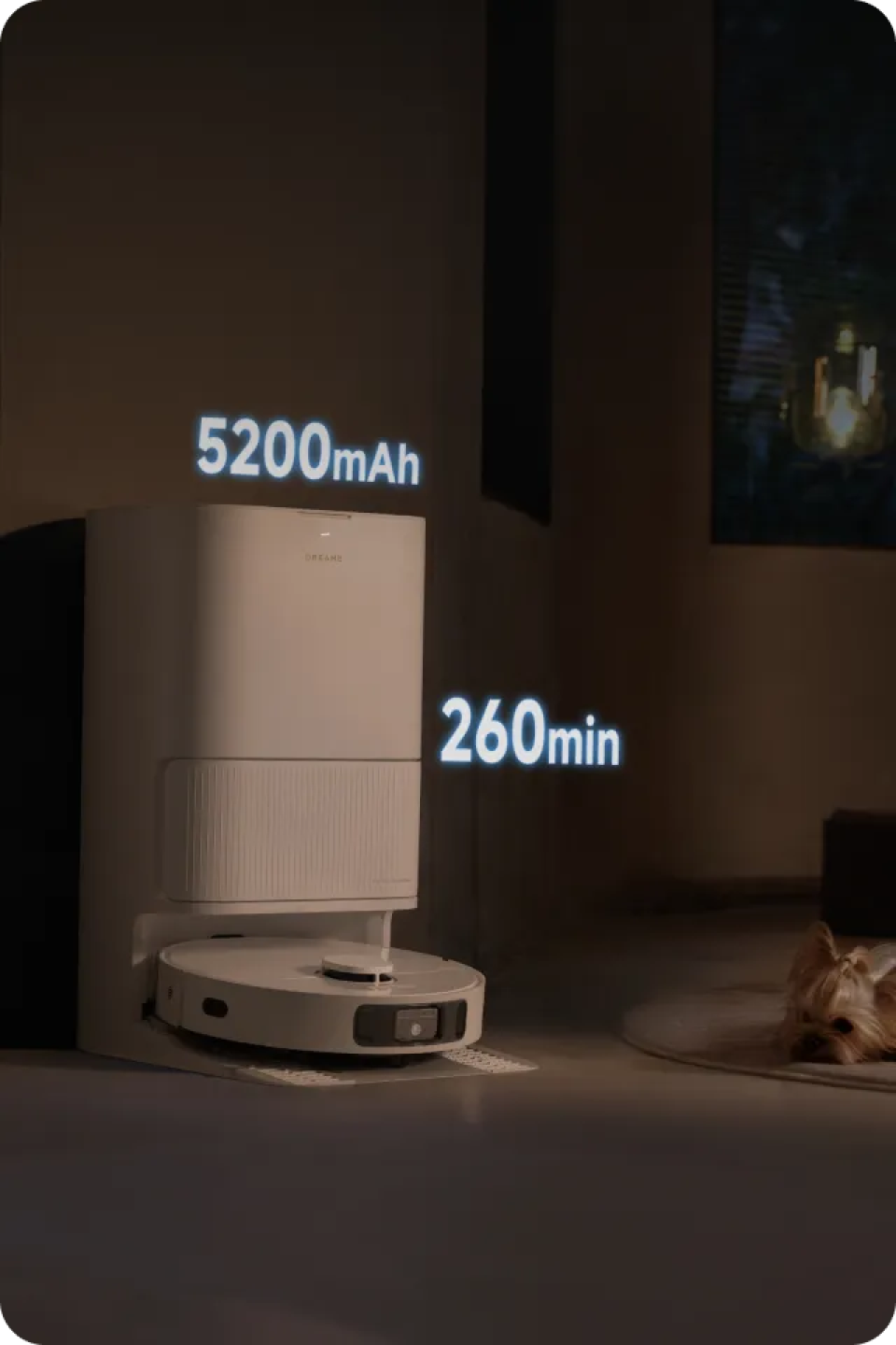 *260min: Based on our in-house lab data in Vacuuming Mode under quiet suction settings. Actual performance is based on the home environment.