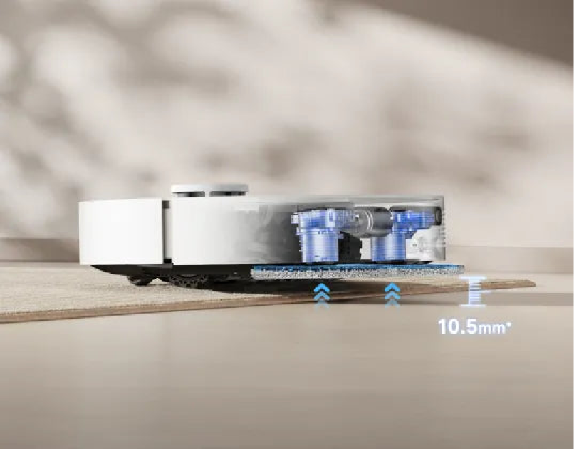 *10.5mm mop raising: The height difference of the robot vacuum is 10.5mm before and after mop lifting. For carpets with piles longer than 3mm, we suggest you set the robot to avoid medium and high-pile carpets via the Dreamehome app (only in intelligent cleaning of carpet mode) and protect your carpets from getting wet.