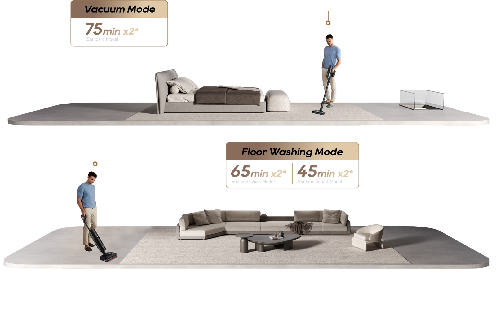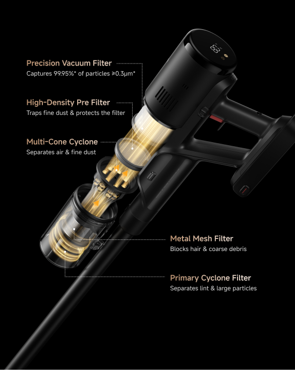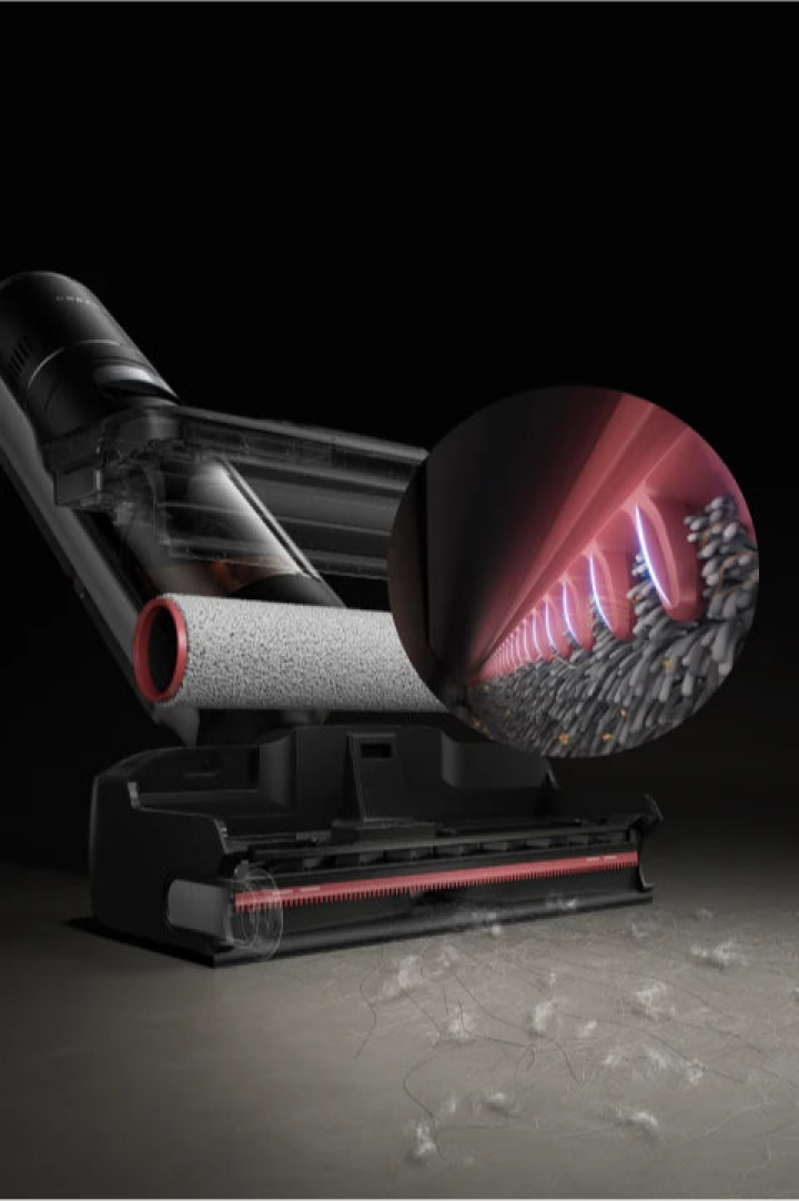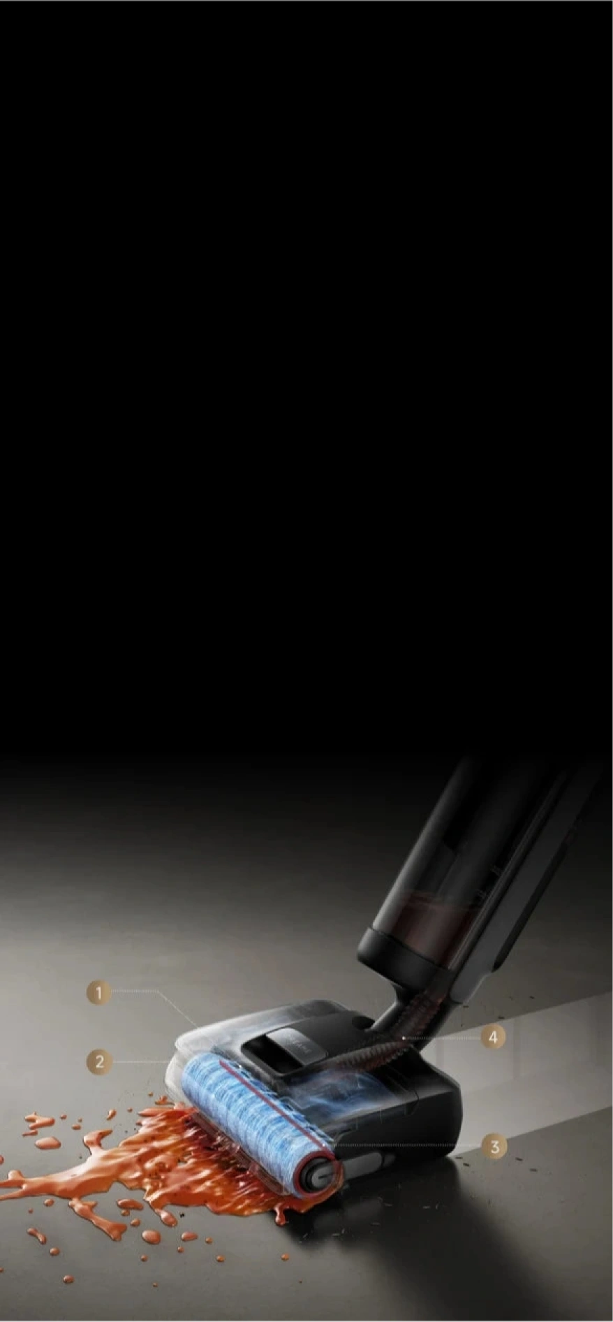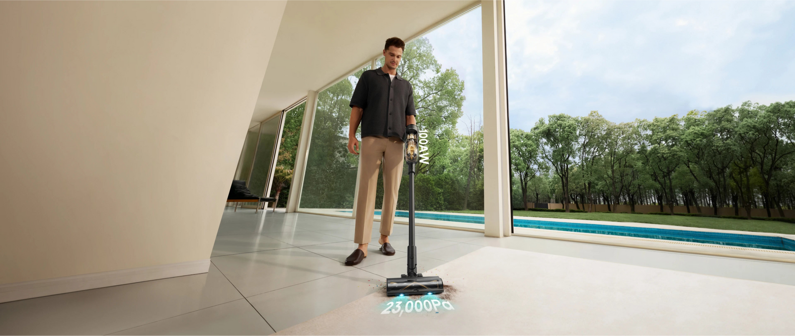 H15 Mix fully reclines to 180°*, hugging the floor to reach under beds, sofas, and low furniture effortlessly. Its used water tank keeps dirty water contained, protecting the motor while maintaining up to 23,000Pa of powerful suction to conquer even the tightest spaces.
