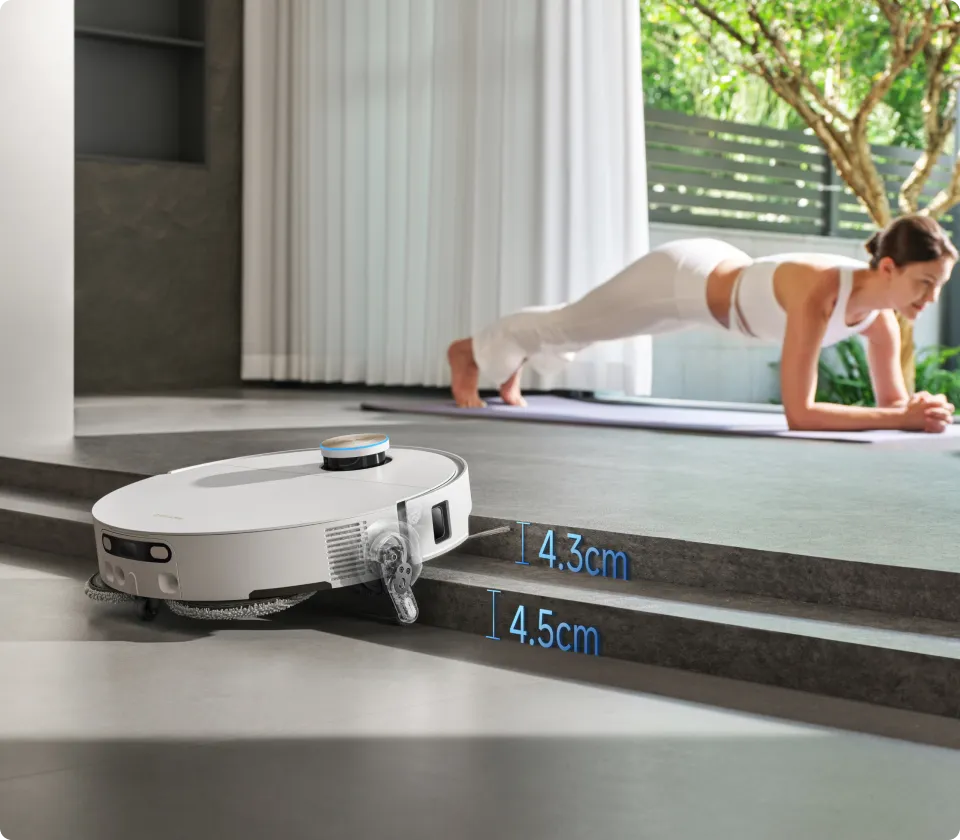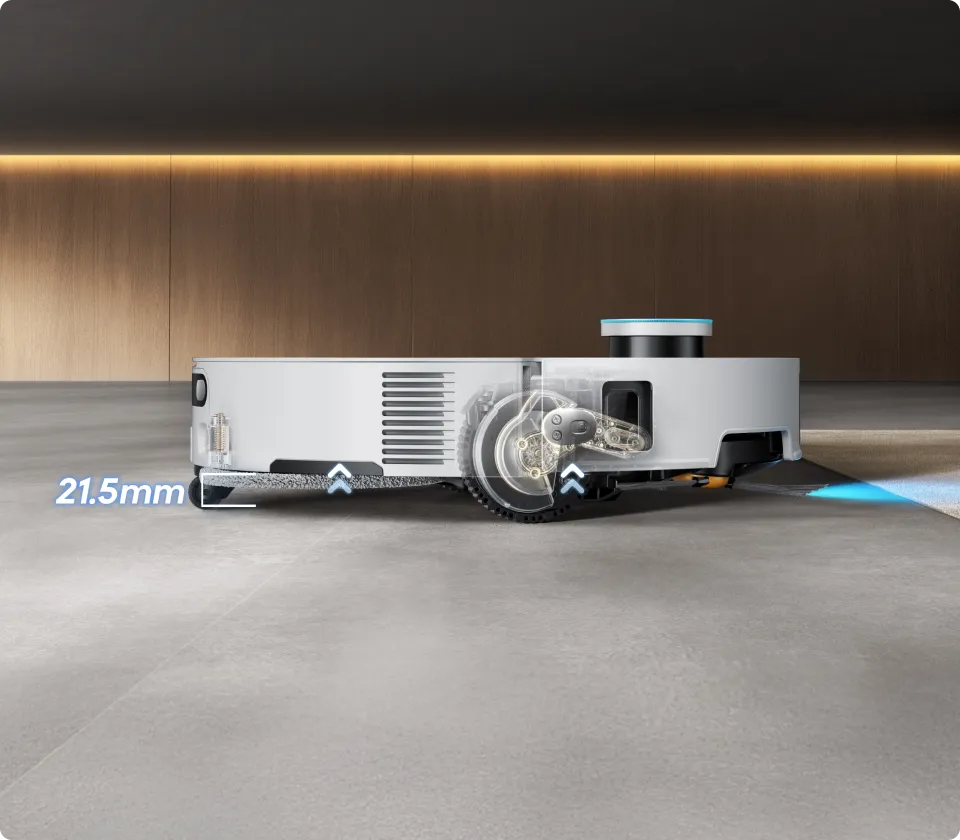 *3.13in (7.95cm): With a 3.13in (7.95cm) slim body, the robot vacuum requires a minimum entry height of 3.19in (8.1cm) when VersaLift navigation is enabled. Please ensure furniture bottoms are flat and free of protrusions before enabling this mode. Based on our in-house lab data. Actual performance may vary.