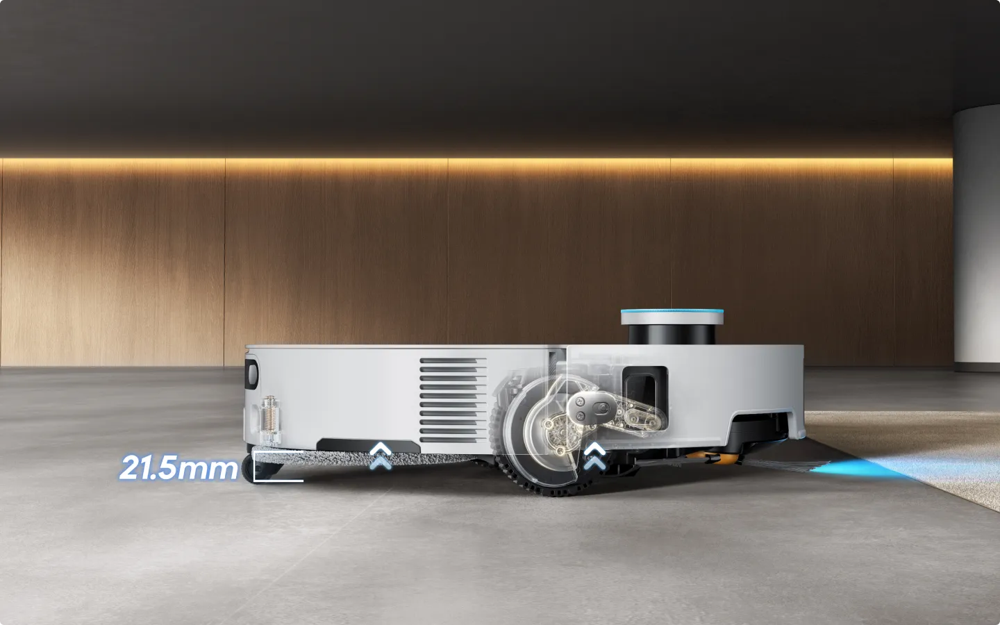 *0.85in (21.5mm): The height difference between the ground and the mop when the chassis and the mop are lifted, based on our in-house lab data.