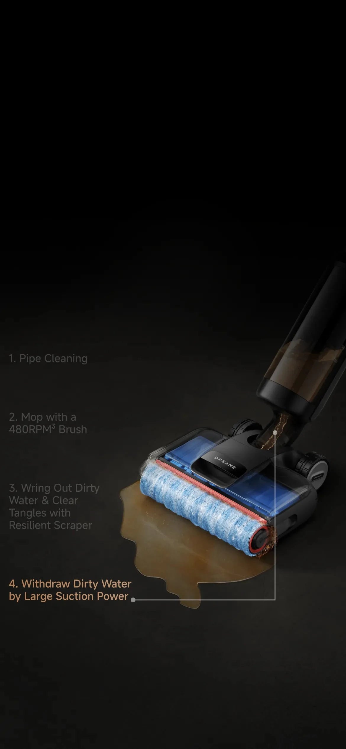 *0.2g water streaks: H12 Pro FlexReach leaves less than 0.2g of watermarks after 4 rounds of mopping a 60cm wooden floor at a speed of 20cm/s, based on our in-house lab testing data. Actual results may vary based on floor type, usage, and environmental conditions