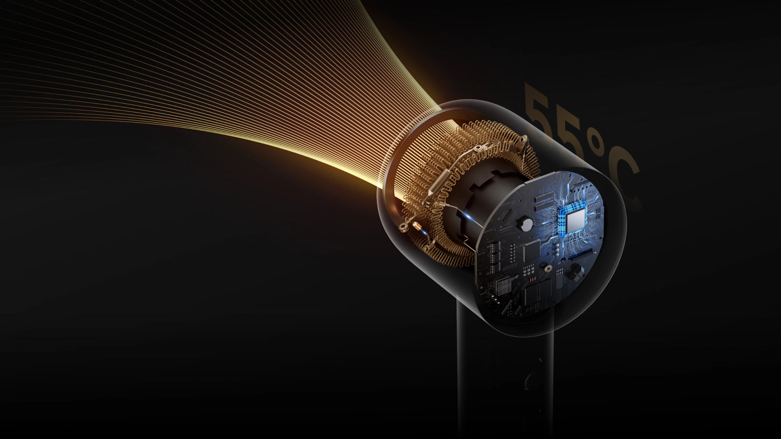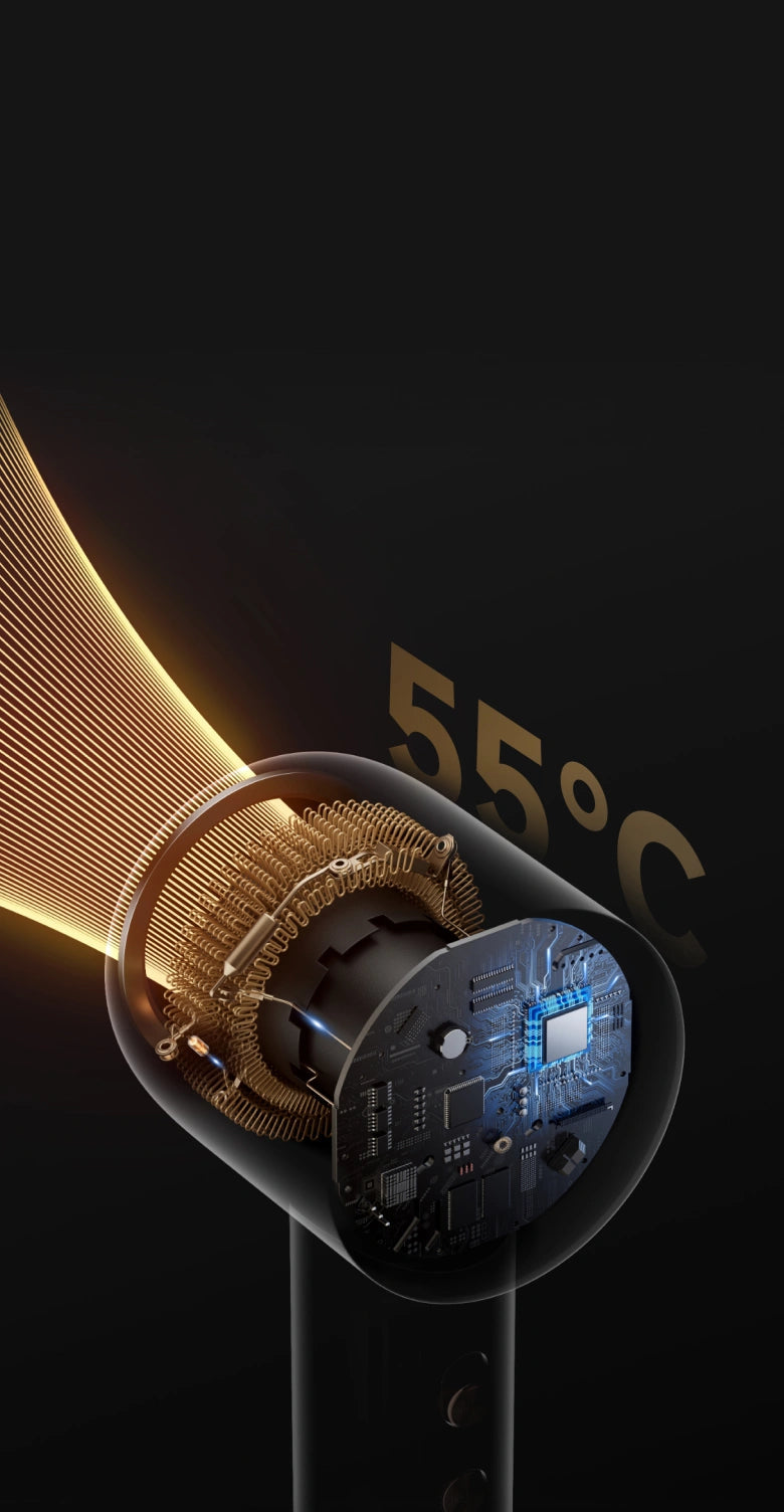 NTC sensor maintains a safe 55°C (131°F)* with 300 checks per second*, automatically shutting off if overheating occurs, reducing heat damage and enhancing usage safety.